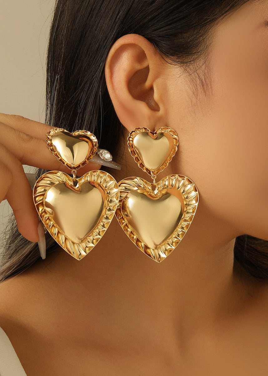Heart-Shaped Teardrop Vintage Metal Earrings