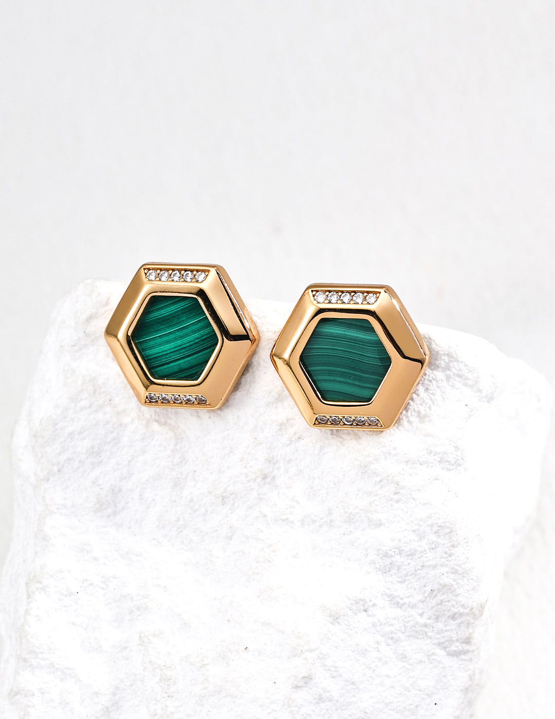 Specifications: Sterling Silver Necklace (length adjustable) / Sterling Silver Earrings Material: S925 Silver / Malachite / Zirconia Color: Vintage Gold Necklace Size: Earrings Size: Approx. 1.5cm