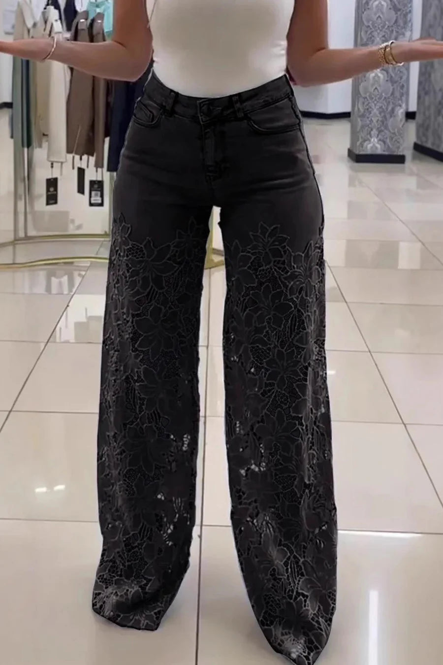Lace Hollow Out High-rise Jeans