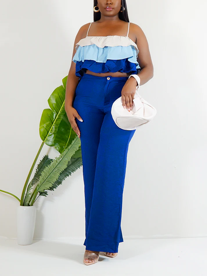 Ruffle Crop Tops And Wide-Leg Pants Sets