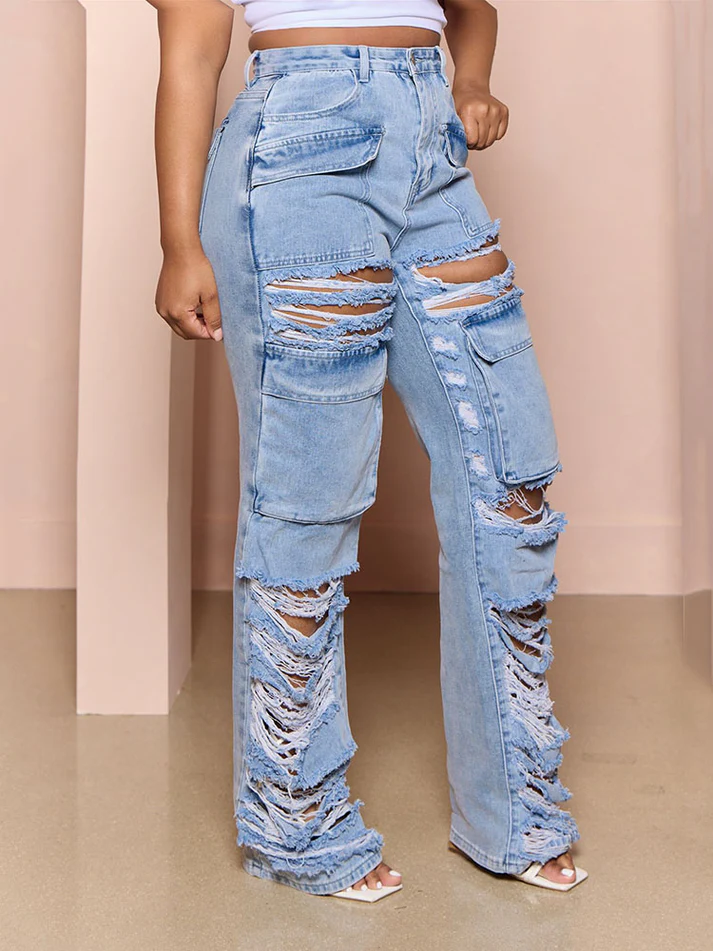 Ripped Pocket High Waist Jeans