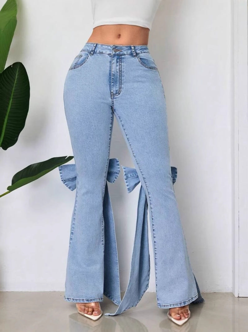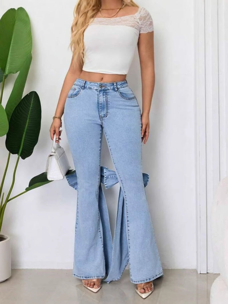 High-Waisted Stretch Bow Bell-Bottom Jeans