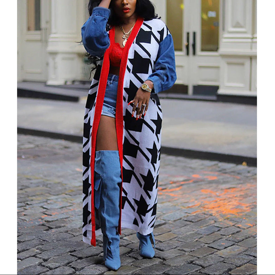 Contrast-Color Patchwork Knit Sweaters