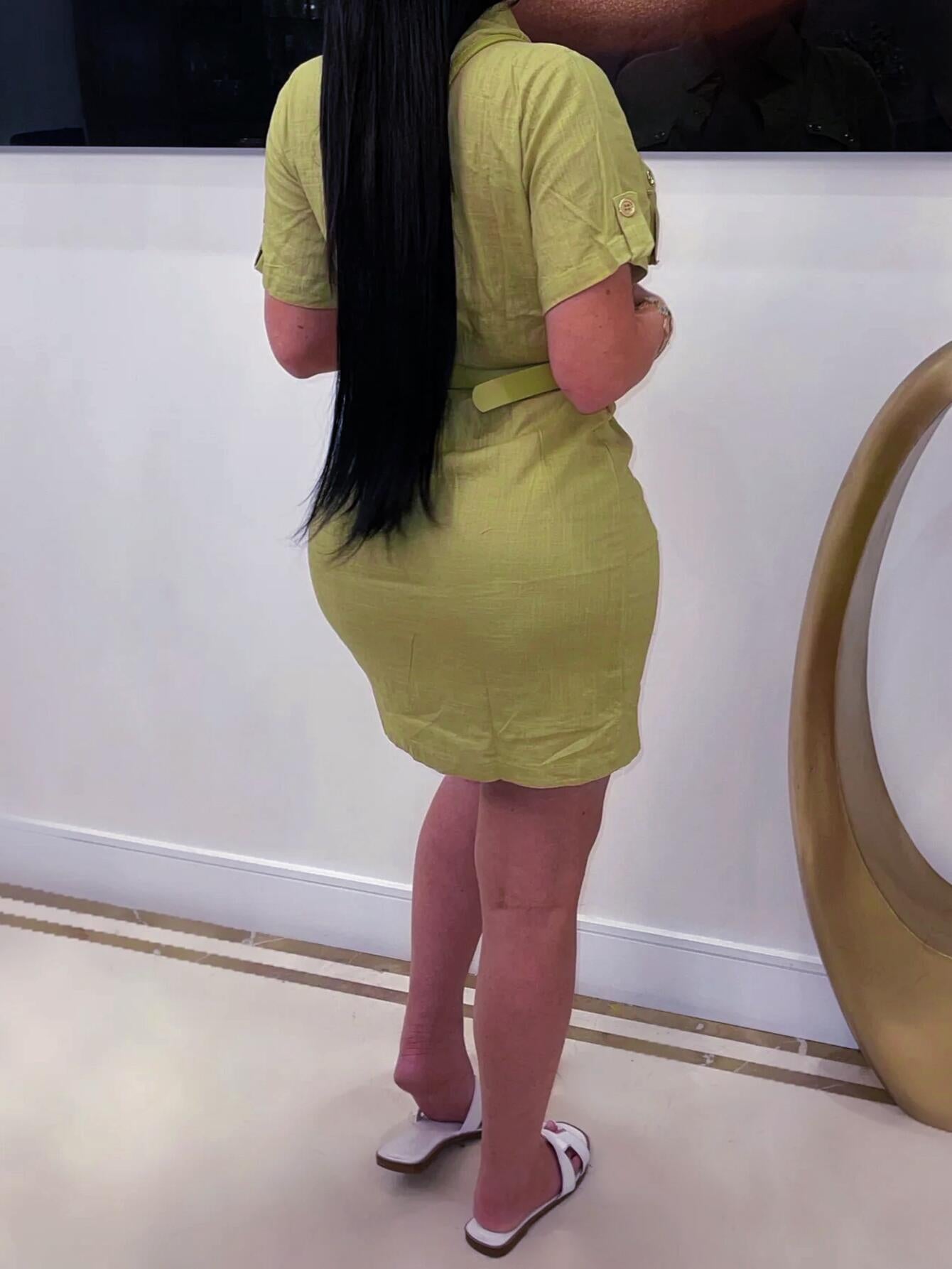 DETAILSStyle: PulloverMaterial: PolyesterDress Length: Short DressStyle Category: ElegantSilhouette: Straight SkirtNeckline: LapelSleeve Length: Short SleeveWaist Type: Mid Waist