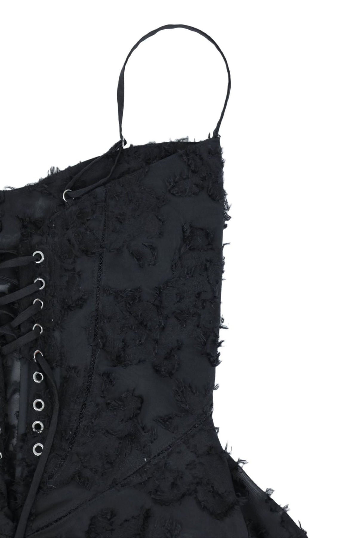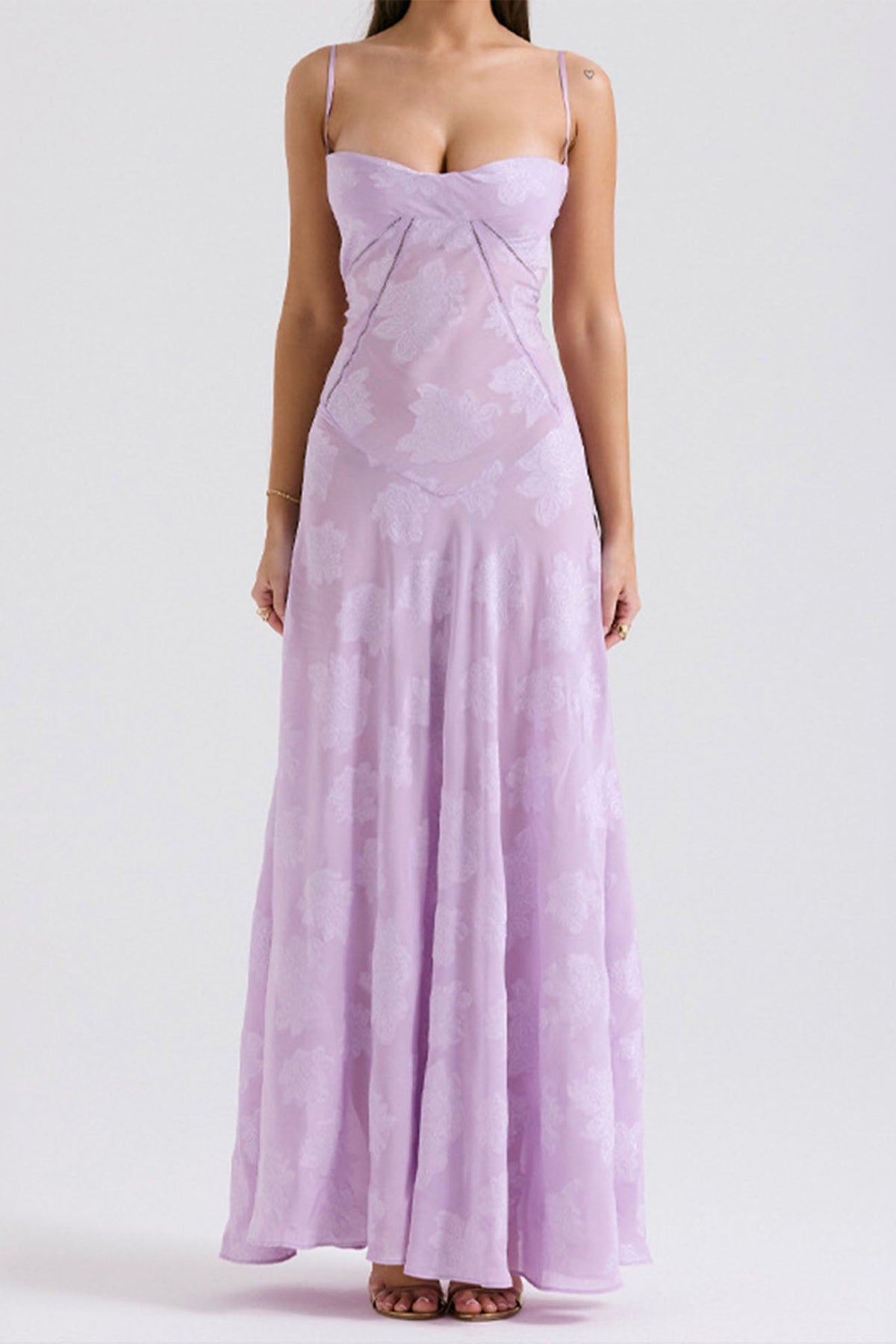 Floral Jacquard Tassel Lace Up Maxi Dress