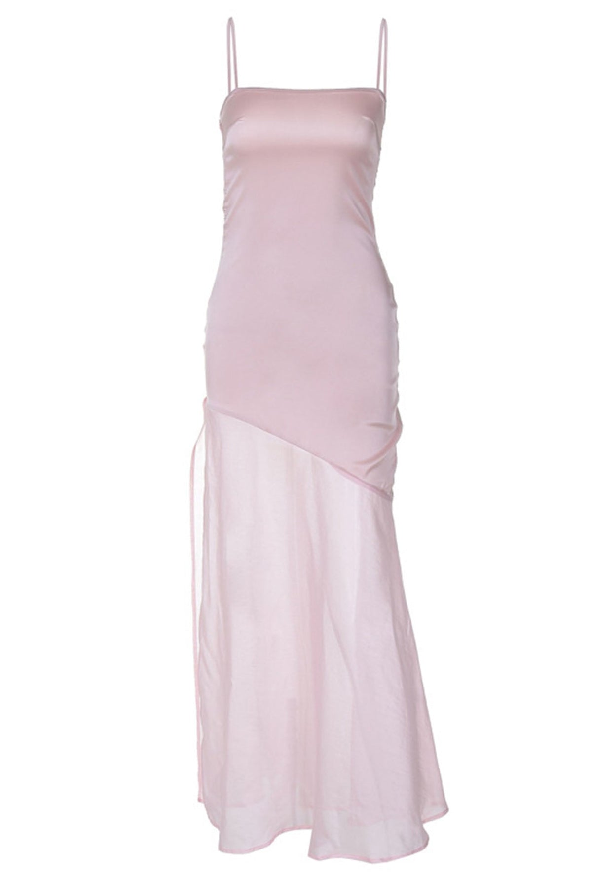 Mesh Patchwork Spaghetti Strap Maxi Dress