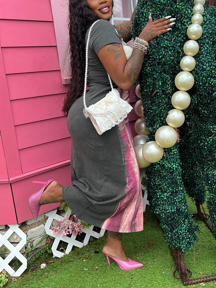 Pearl Bow Print Dress