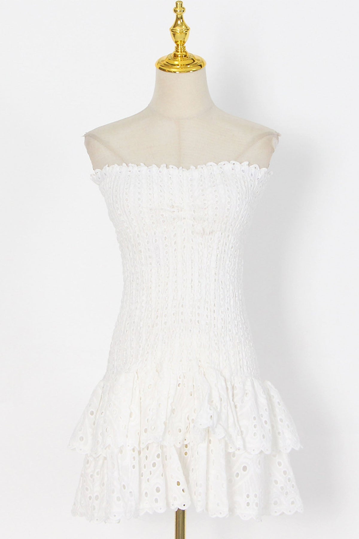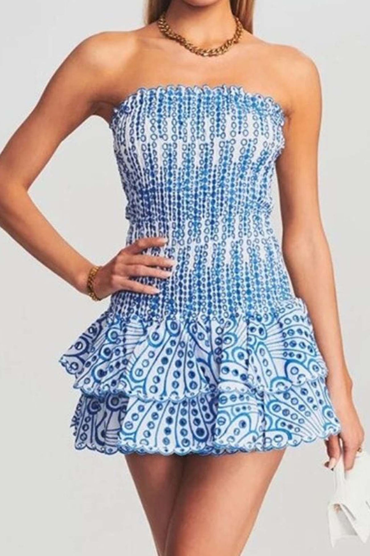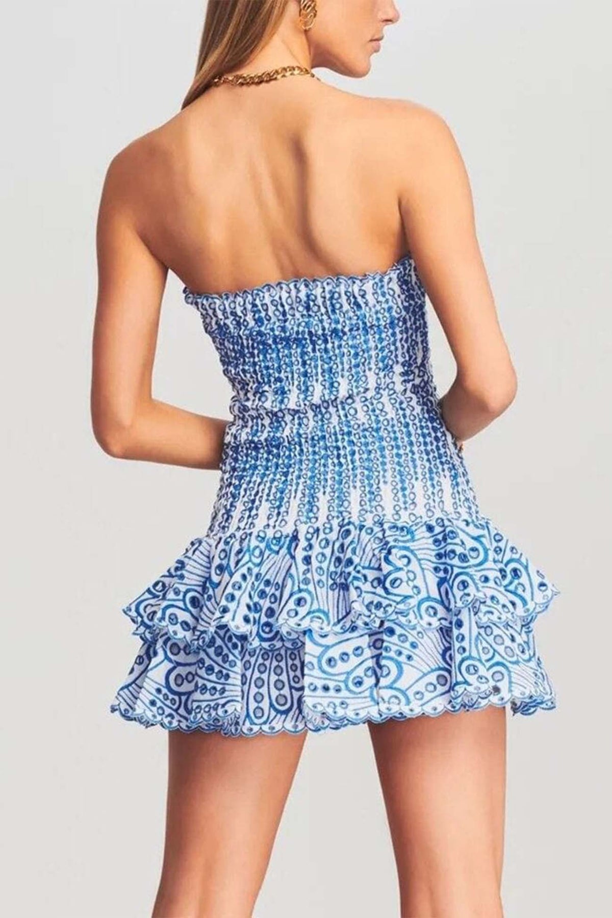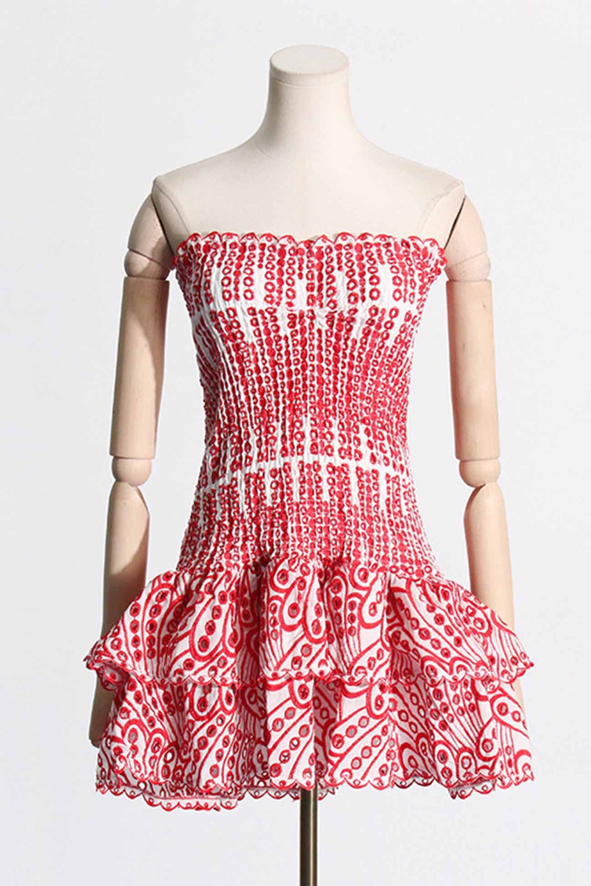 Shirred Off-The-Shoulder Embroidery Tiered Dress