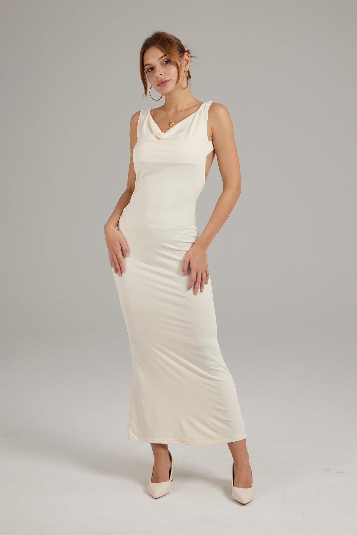 Solid Color Cowl Neck Backless Pack Hip Dress