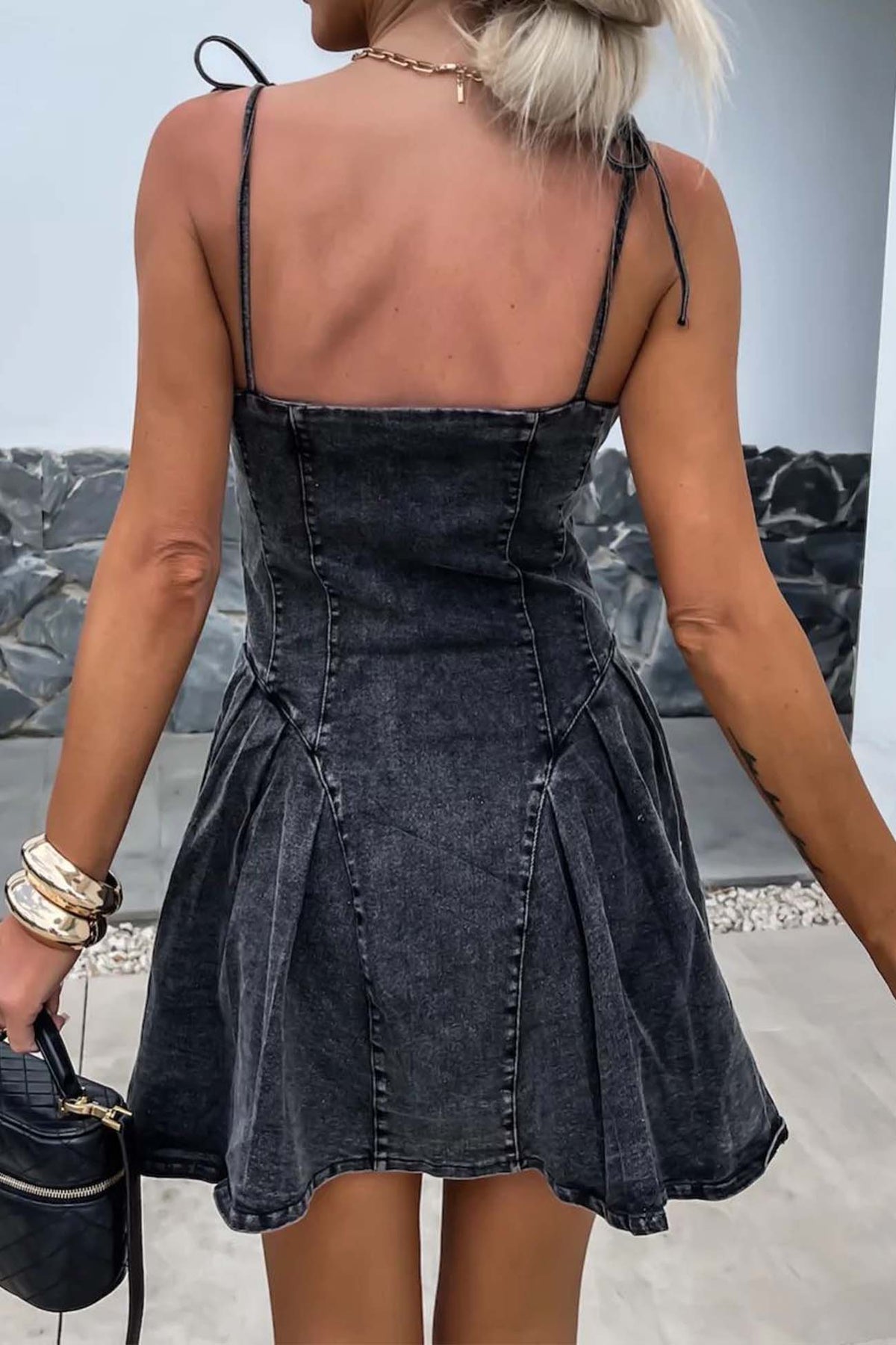 Strappy Zipper A-line Pleated Mini Dress