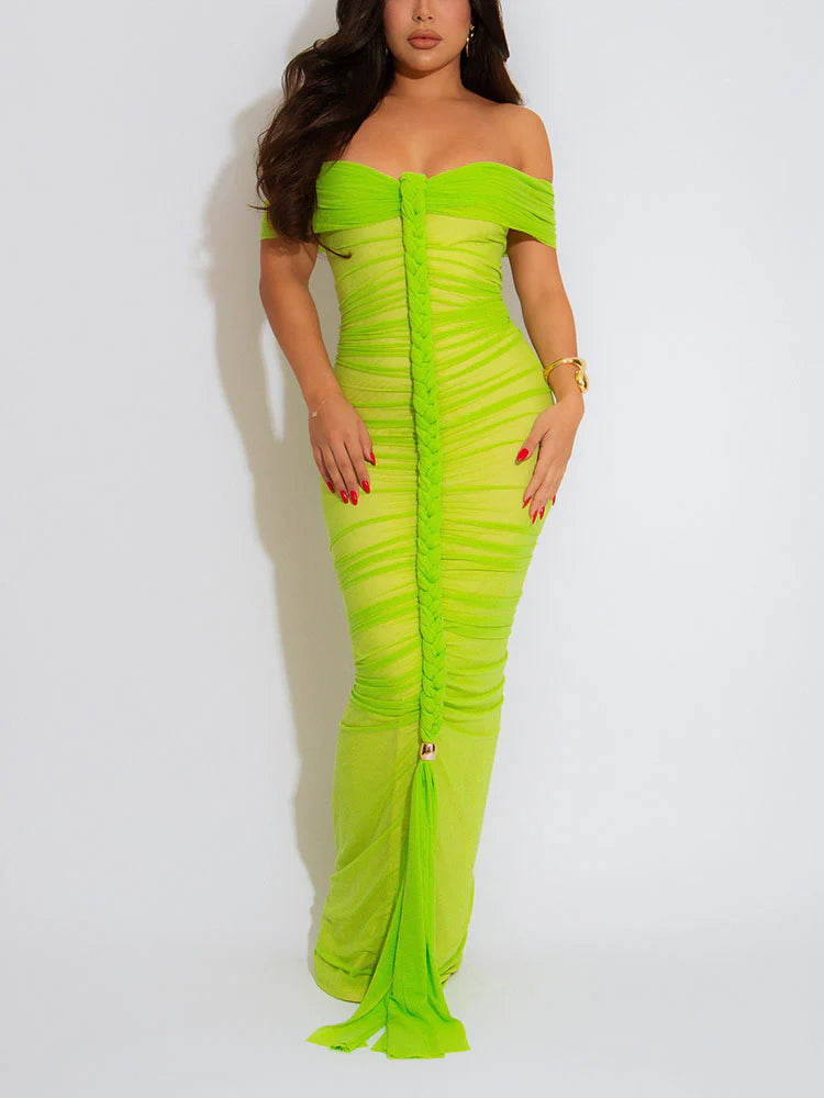 Sweet and Spicy Long-Sleeve Off-Shoulder Fitted Pencil Skirt Dress