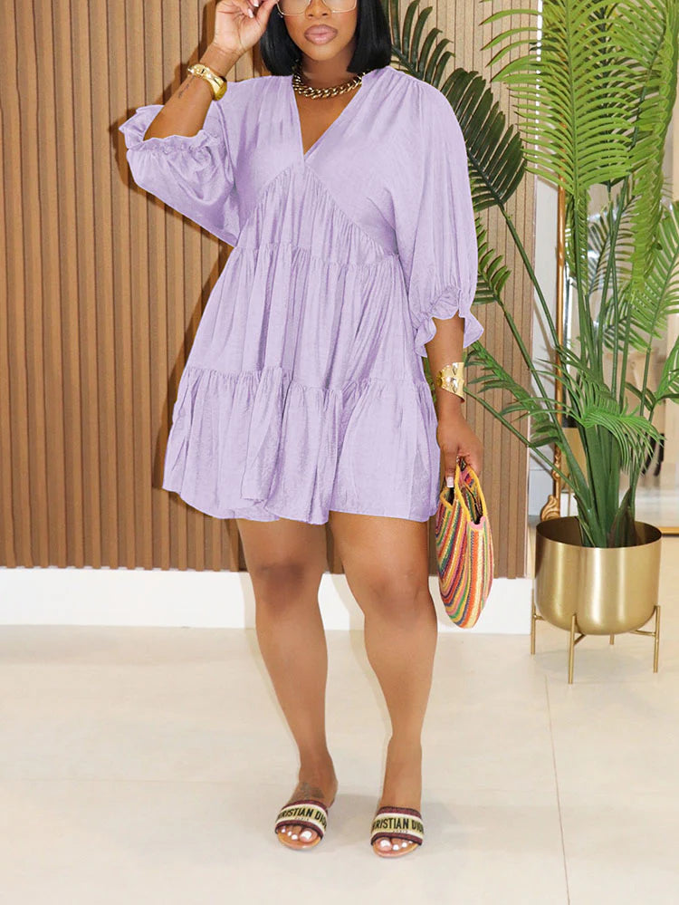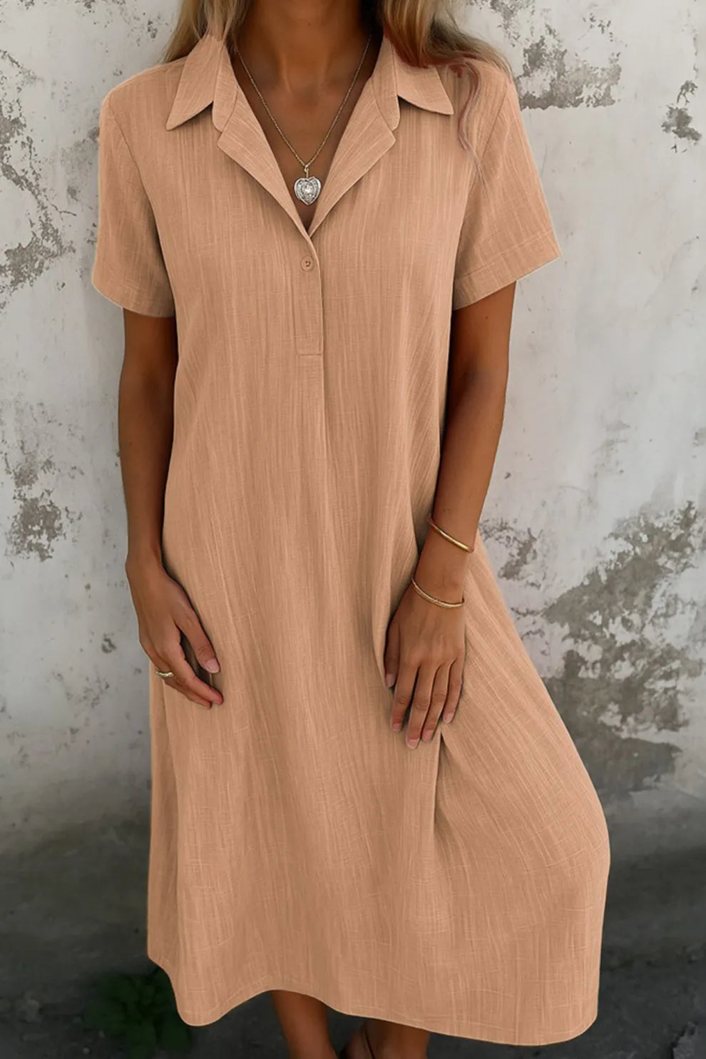 V-Neck Solid Color Short-Sleeve Shirt Dress