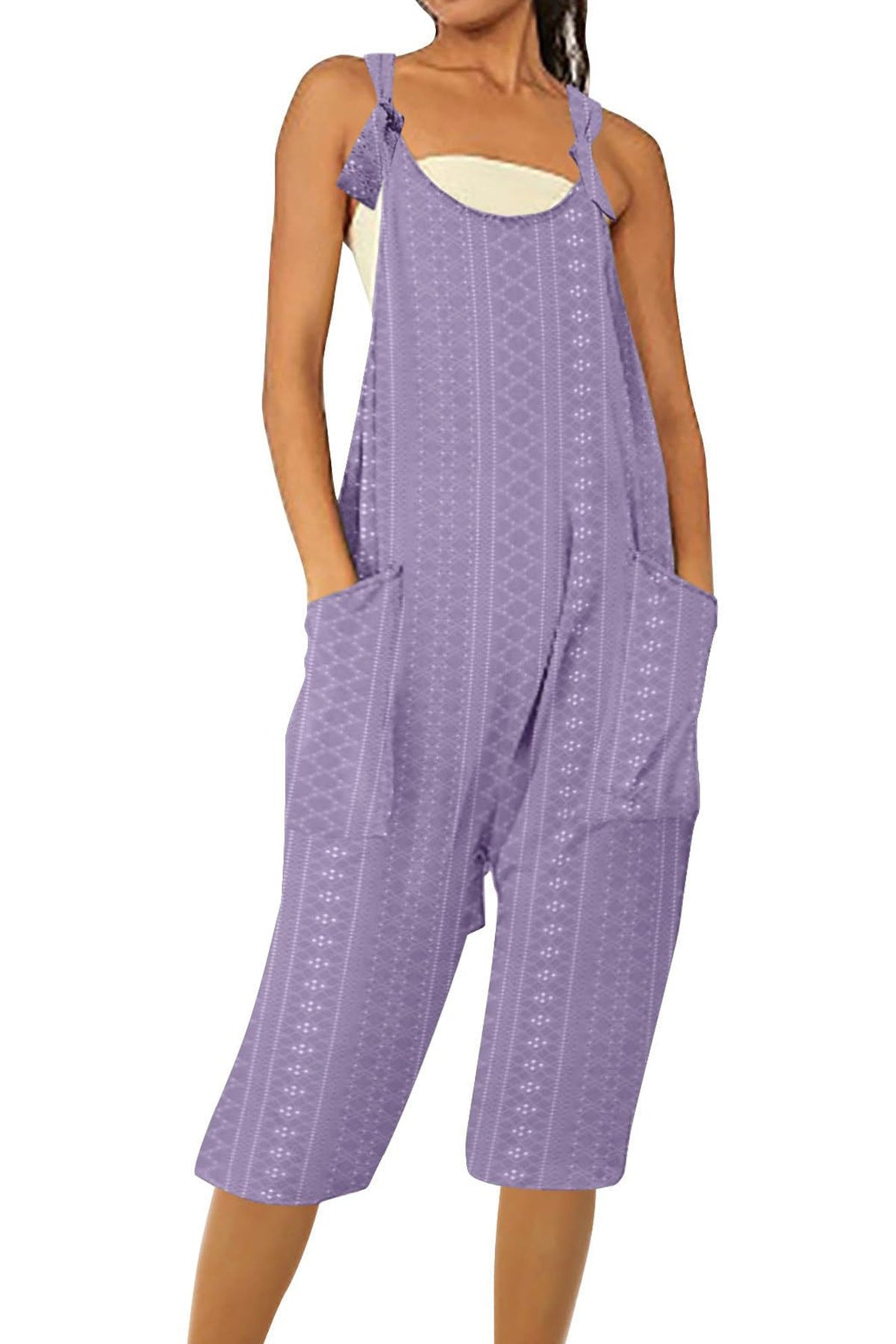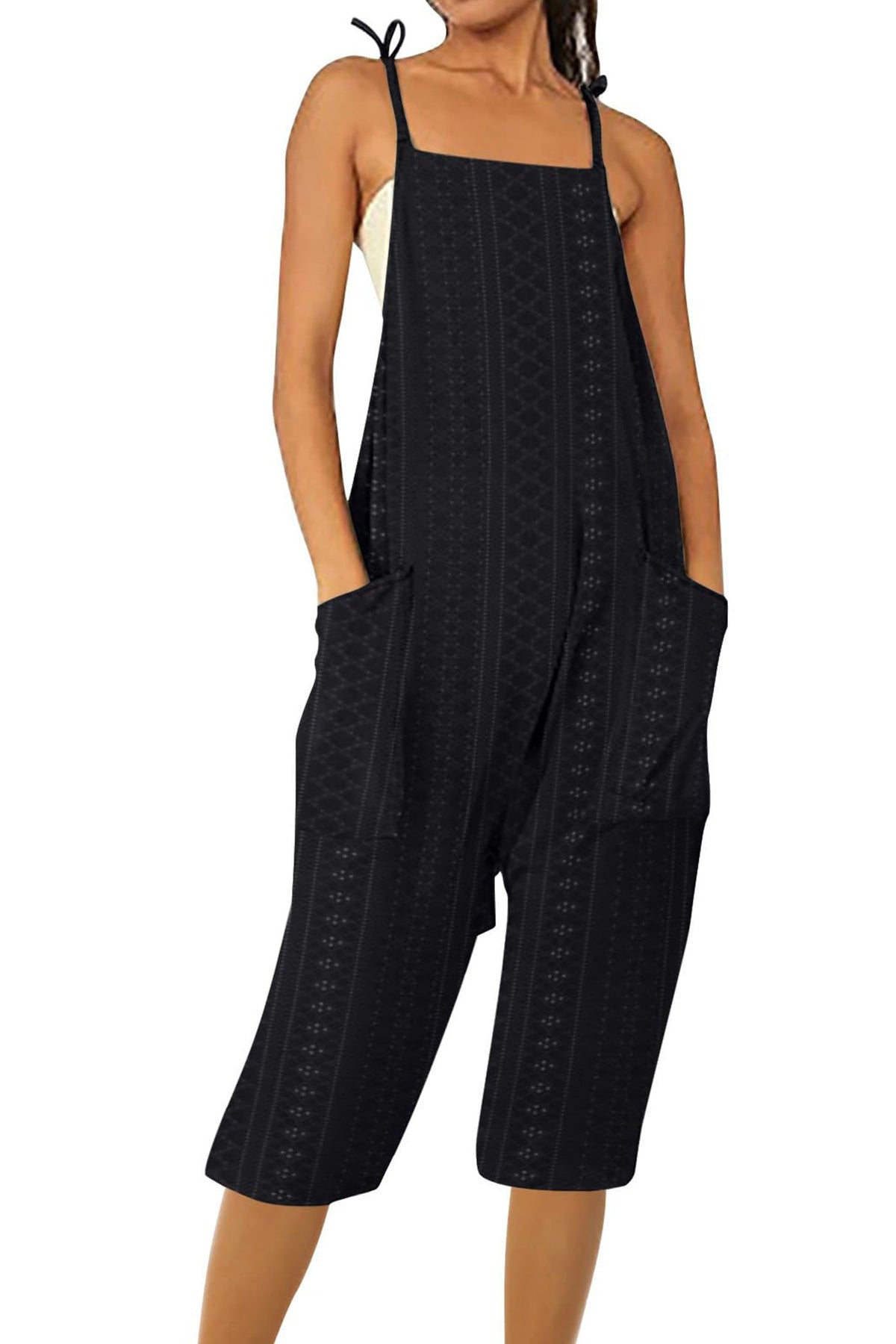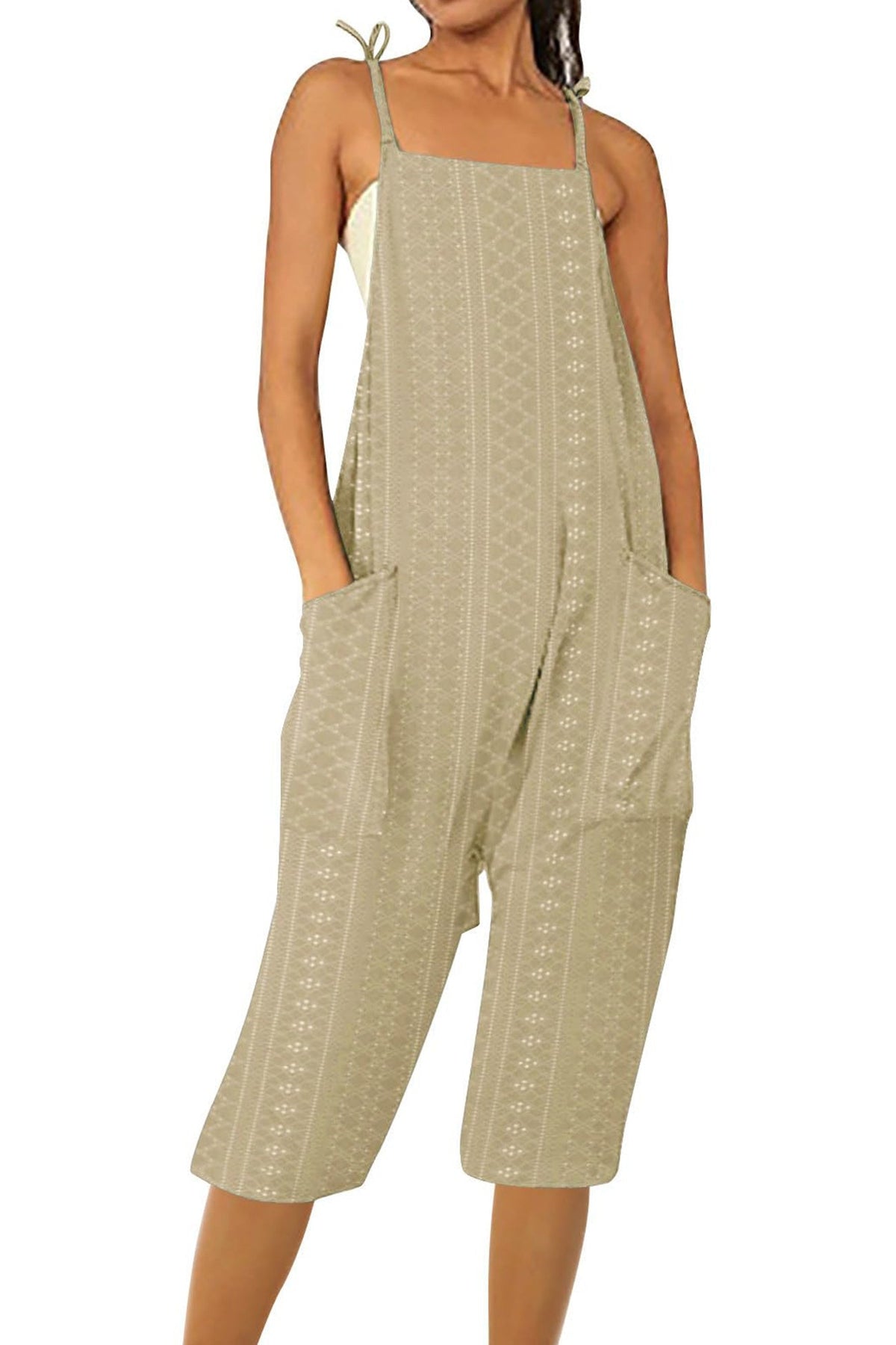 Pocket Eyelet Cami Capri Jumpsuits