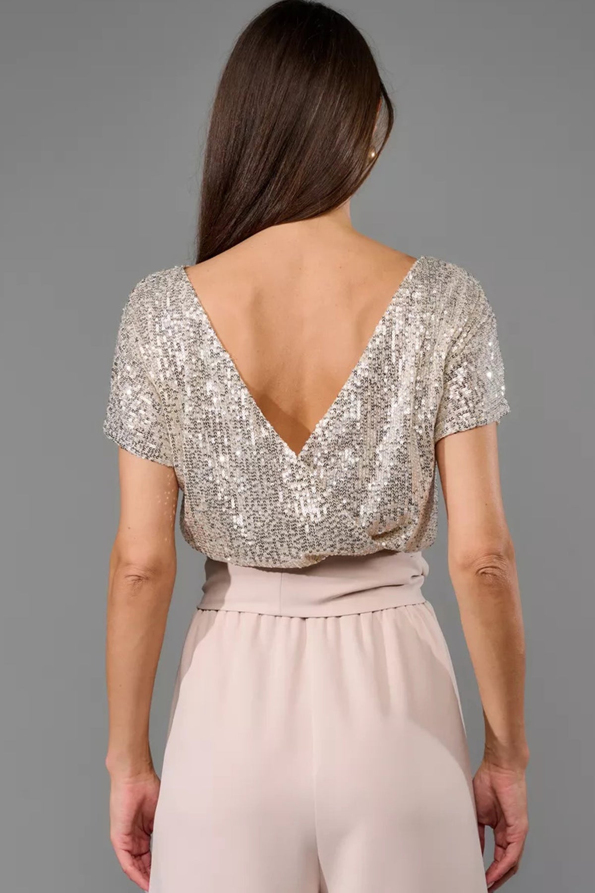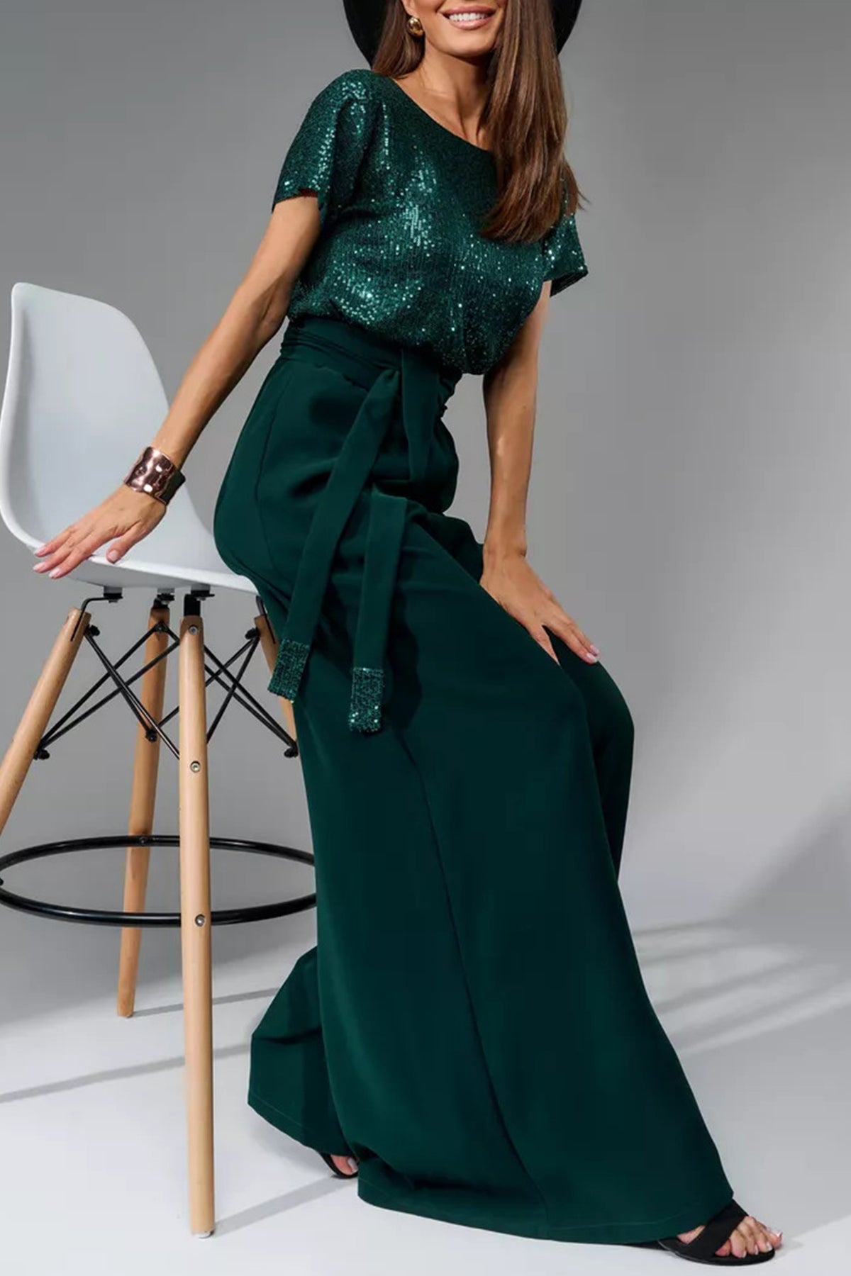 Sequin Patchwork Short Sleeve High Waist Jumpsuits