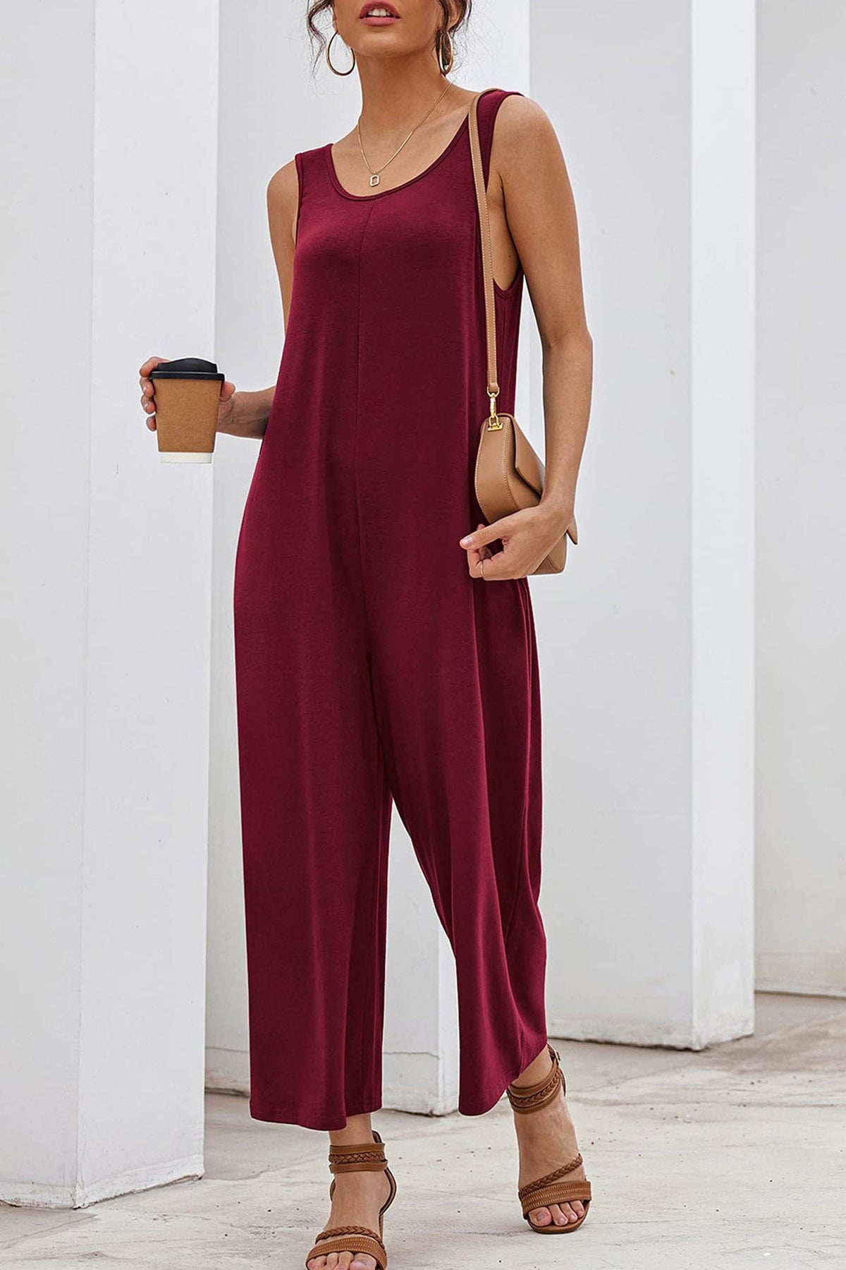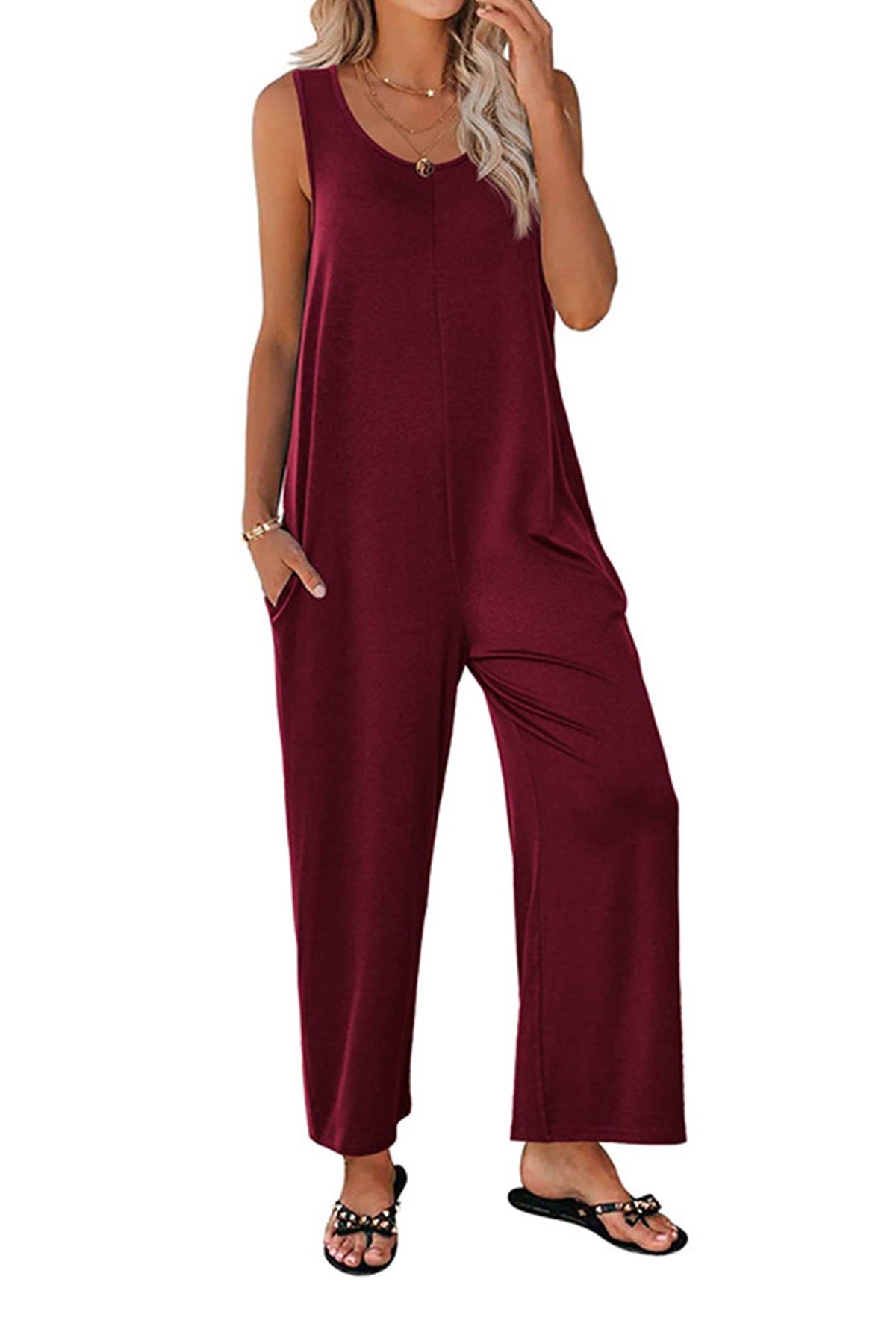 Sleeveless Pocketed Wide Leg Jumpsuits