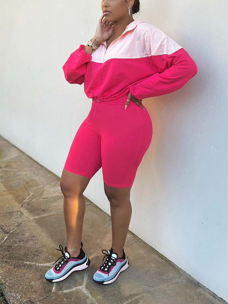 Half Zip Hoodie & Biker Shorts Set