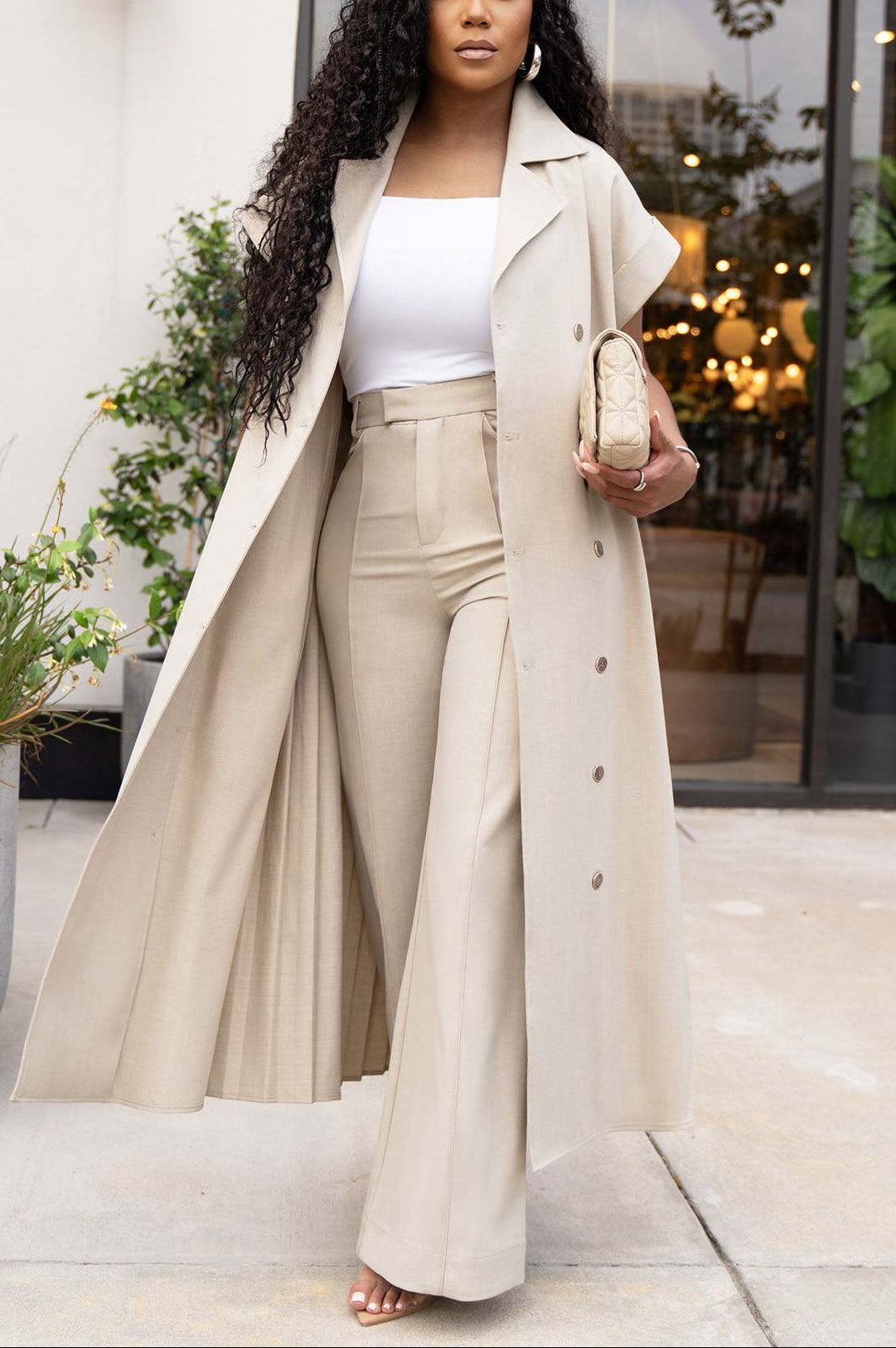 DETAILSMaterial: PolyesterPant Length: Long PantsSleeve Length: SleevelessDress Length: Long DressColor: Off-WhiteStyle Type: CasualSleeve Type: Sleeveless
