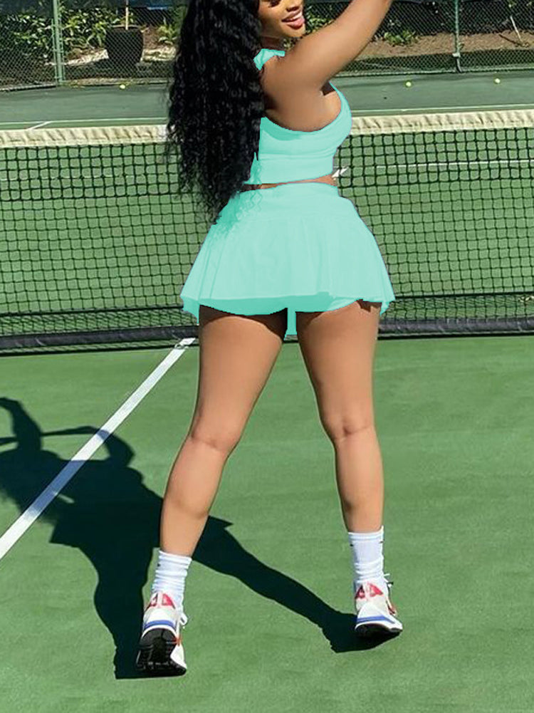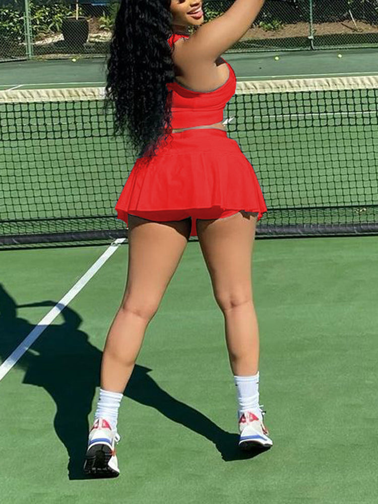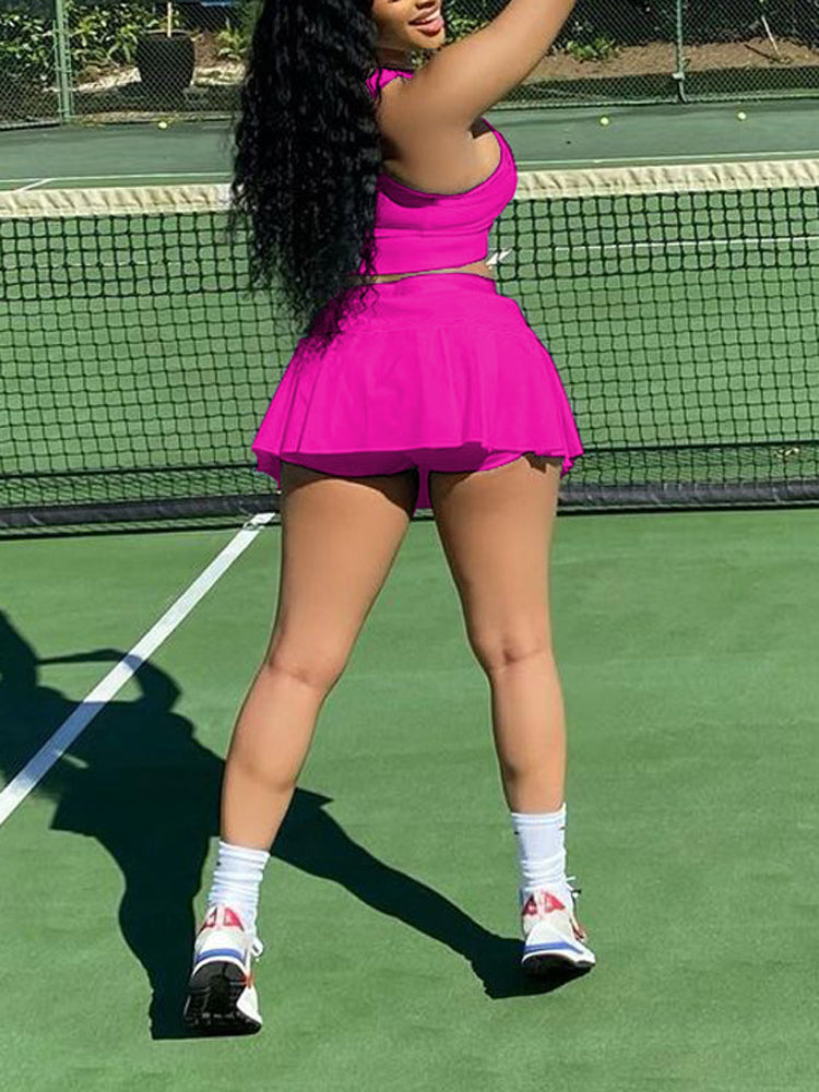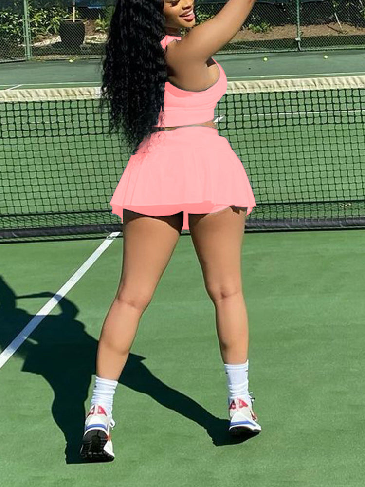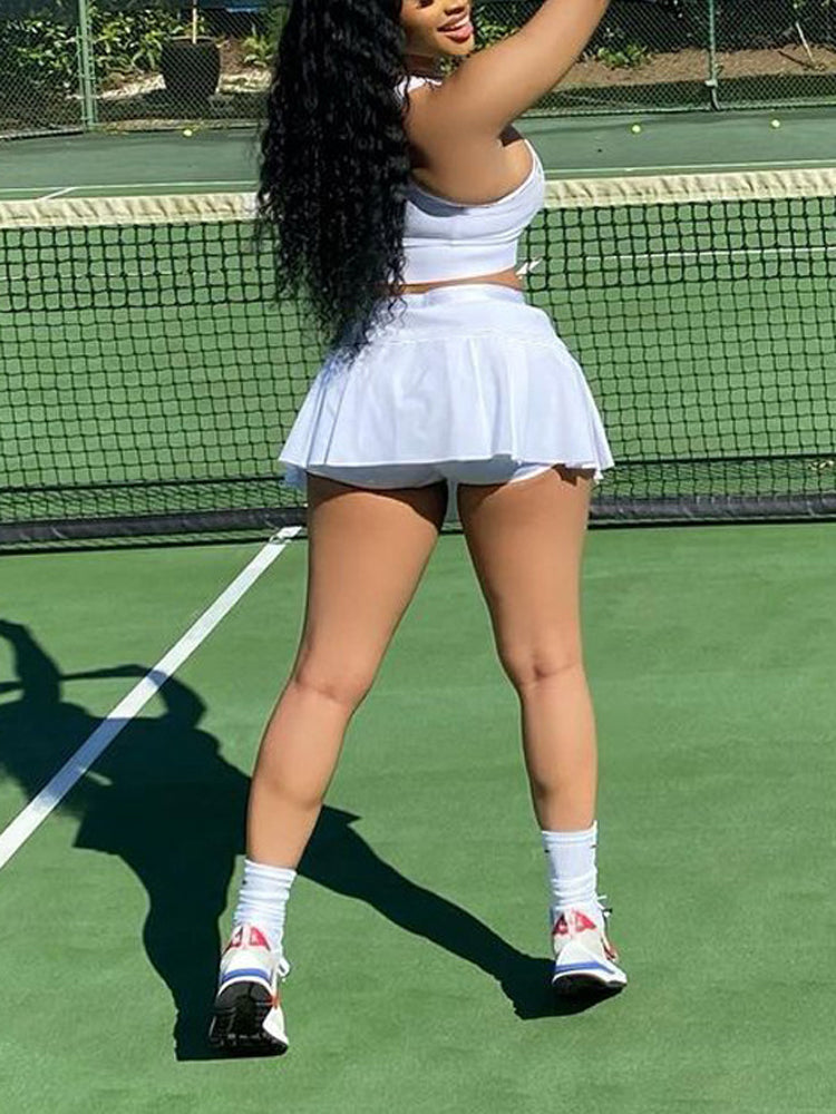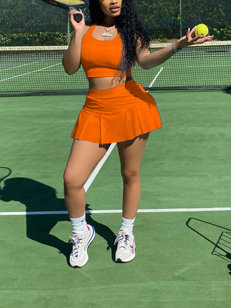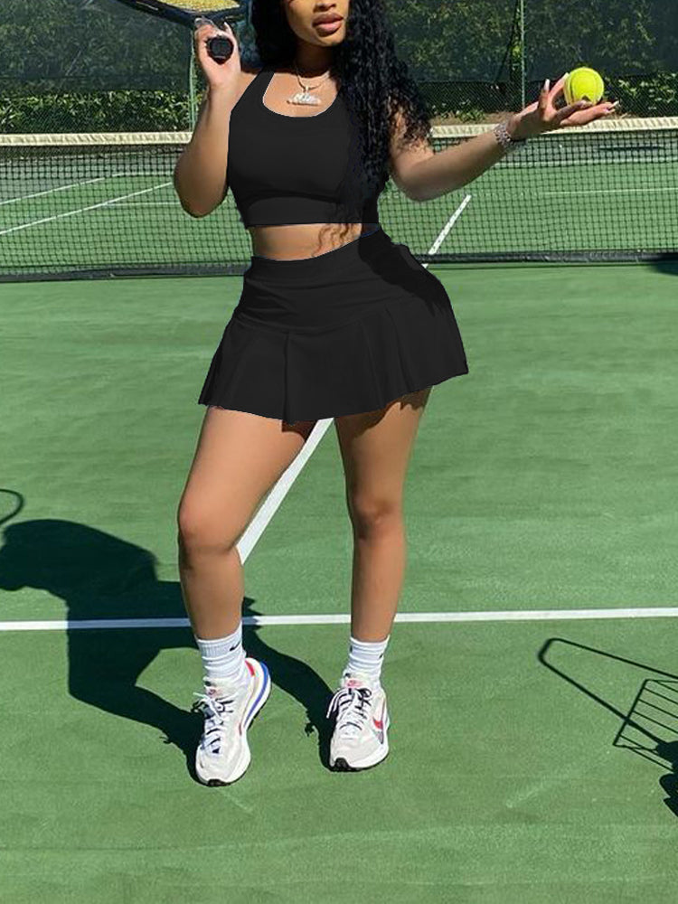 Sleeveless Top Pleated Skirt Set