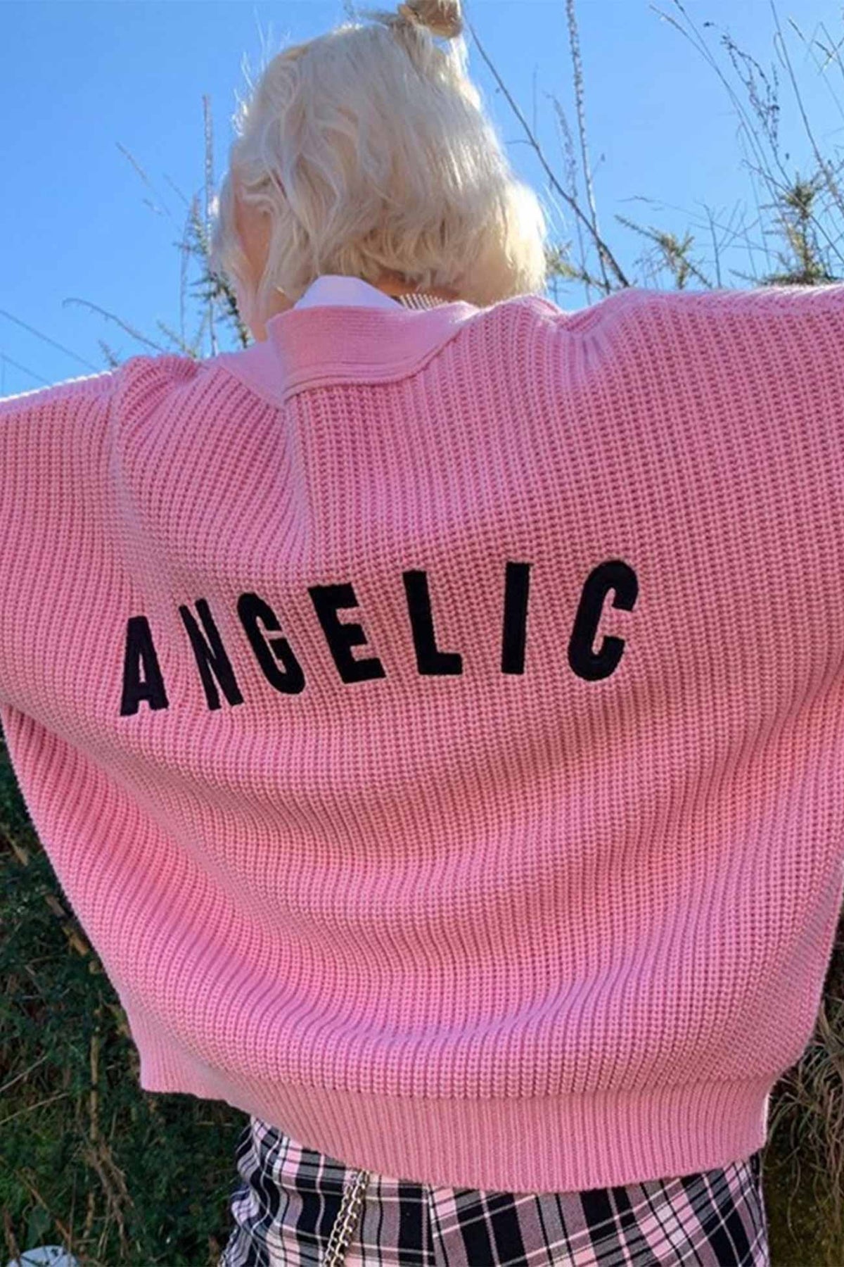 Pink Letters Embroidery Button-Front Cardigan