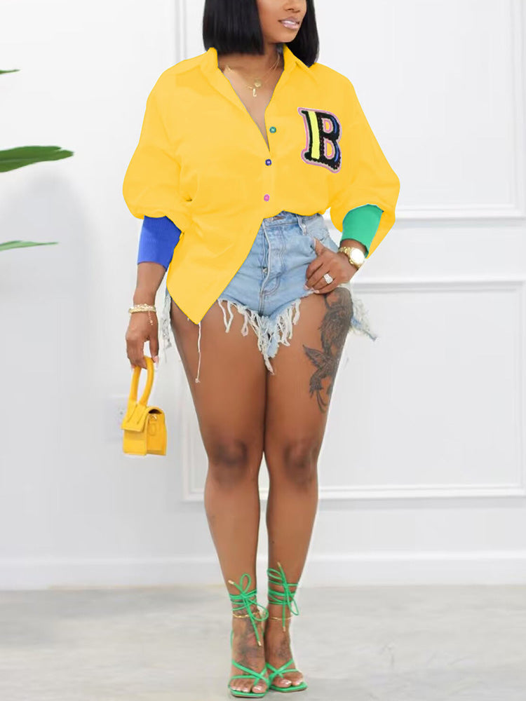 Embroidery Letter Decor Shirt