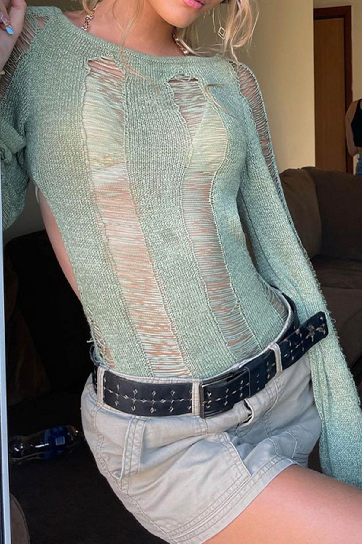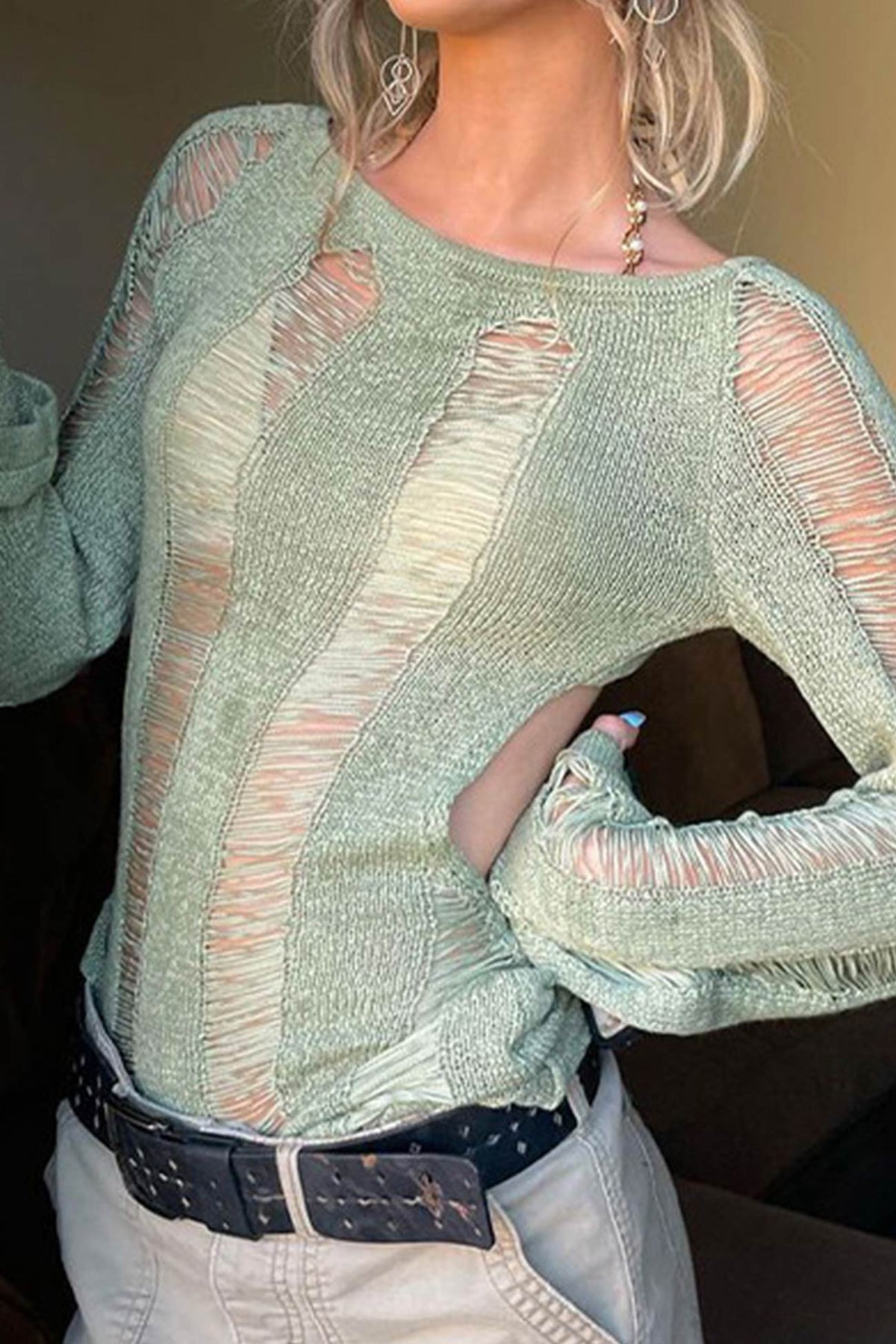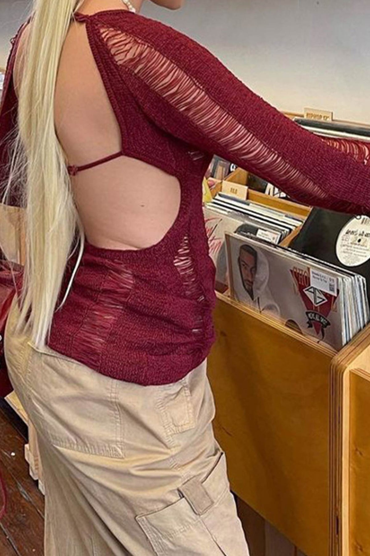 Long Sleeve Backless Hollow Out Cover-up Tops
