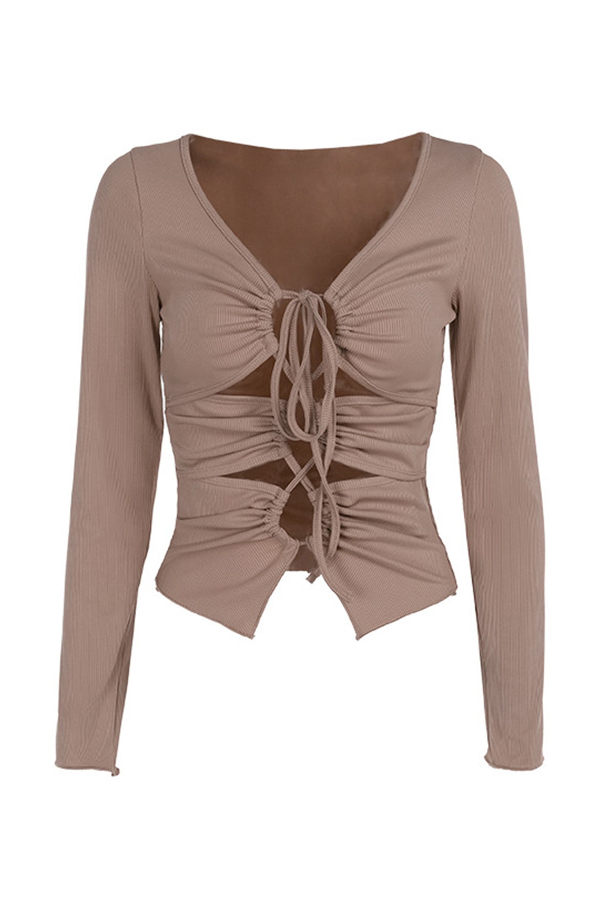 Long Sleeve Tie-up Cutout Bodycon Tops