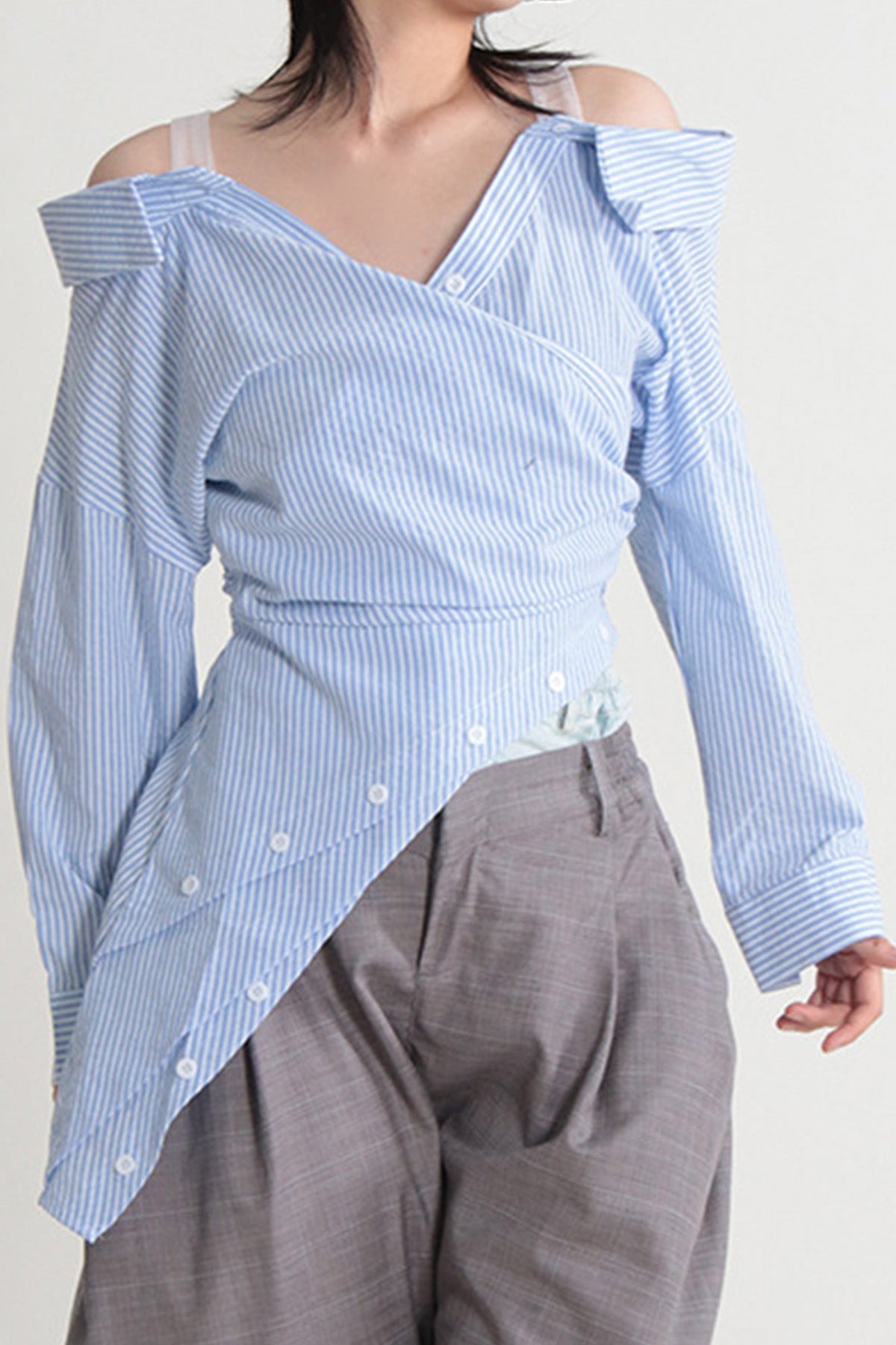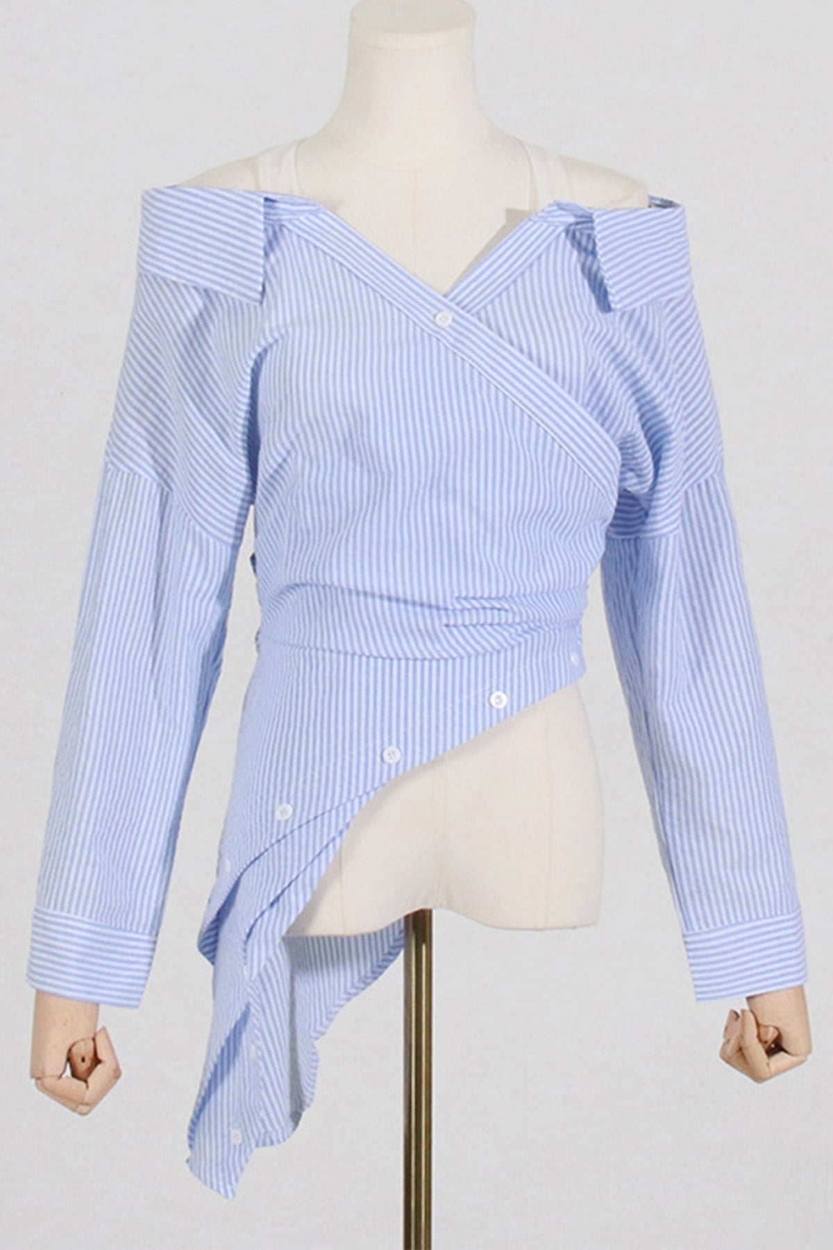 Off Shoulder Irregular Long Sleeve Striped Blouse